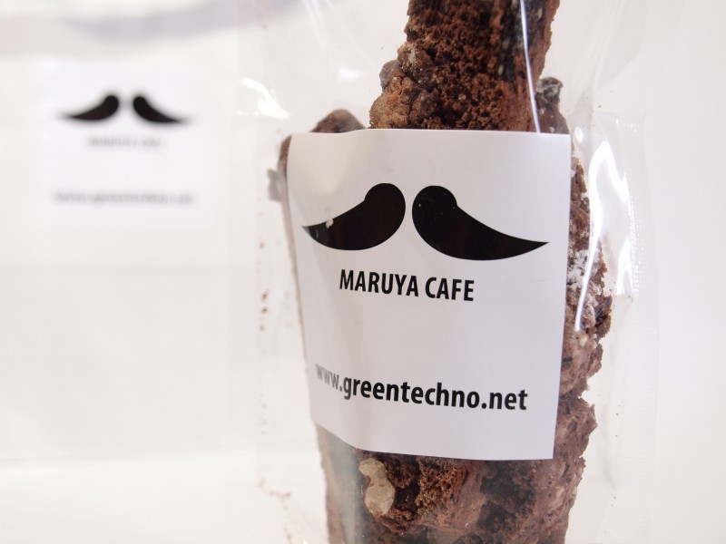 龍馬の友達で三菱の創業者、岩崎弥太郎の生家前にあるカフェ「まる弥(まるや)カフェ」が販売するスイーツのパッケージとショップカード。