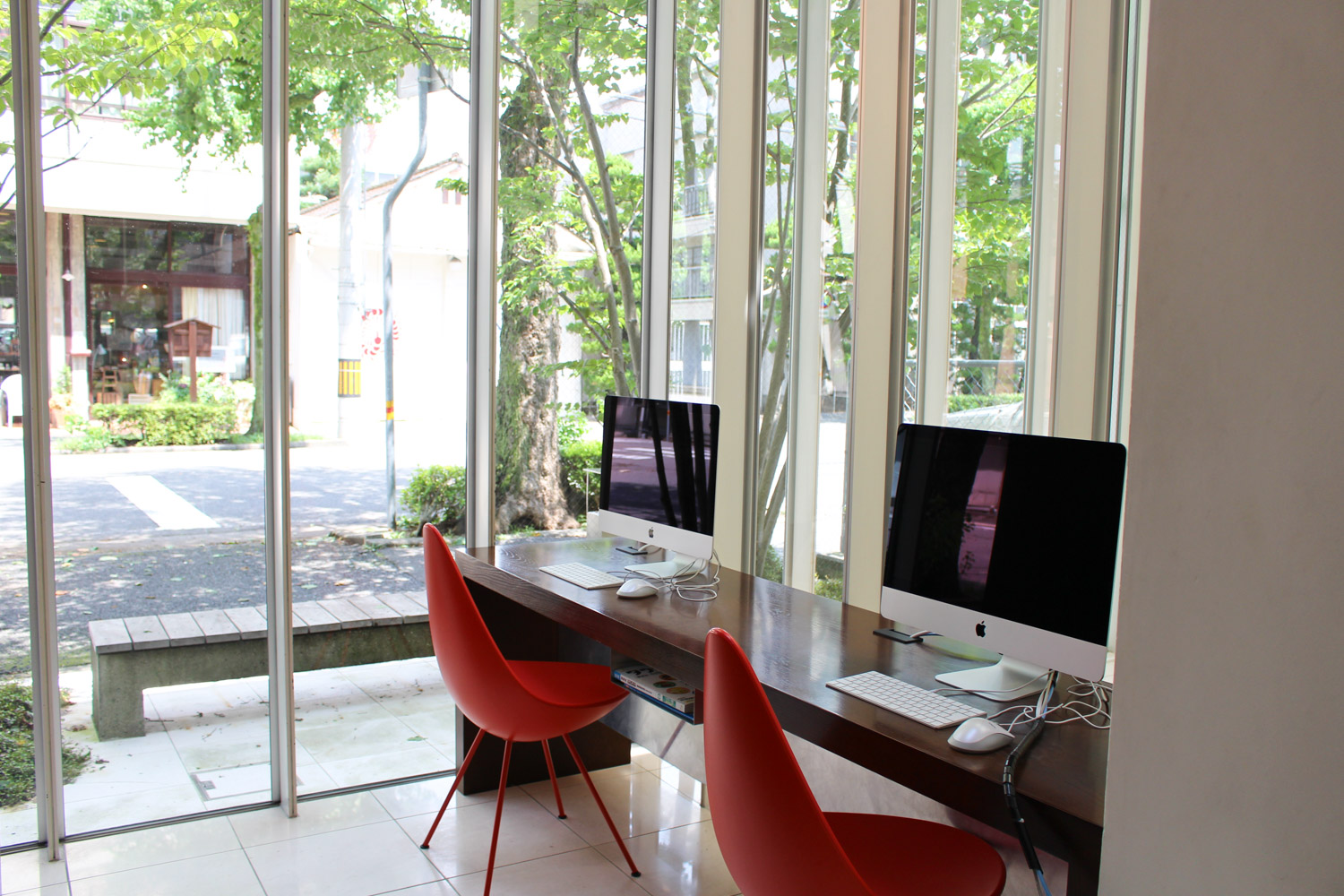 共有のパソコンは、デザイナーさんが使うような大きなMacが2つも!