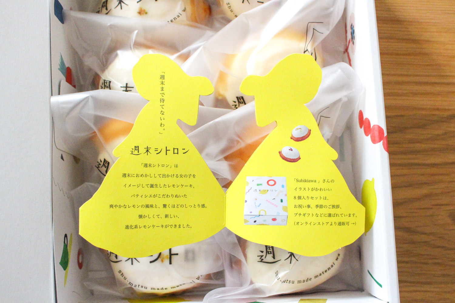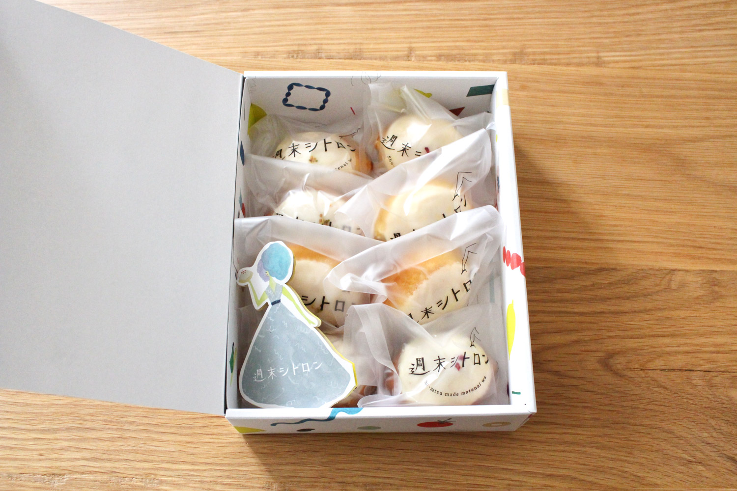 こちらが中に入ってるお菓子。フランスの伝統菓子「ウィークエンドシトロン」を改良して作られています。レモンを使ったバターケーキに、砂糖で作られたグラスアローがコーティングされていて、その名の通り「週末に大切な人と一緒に食べたいケーキ」という意味があるそう。箱も素敵だけど、お菓子もかわいらしいですね*