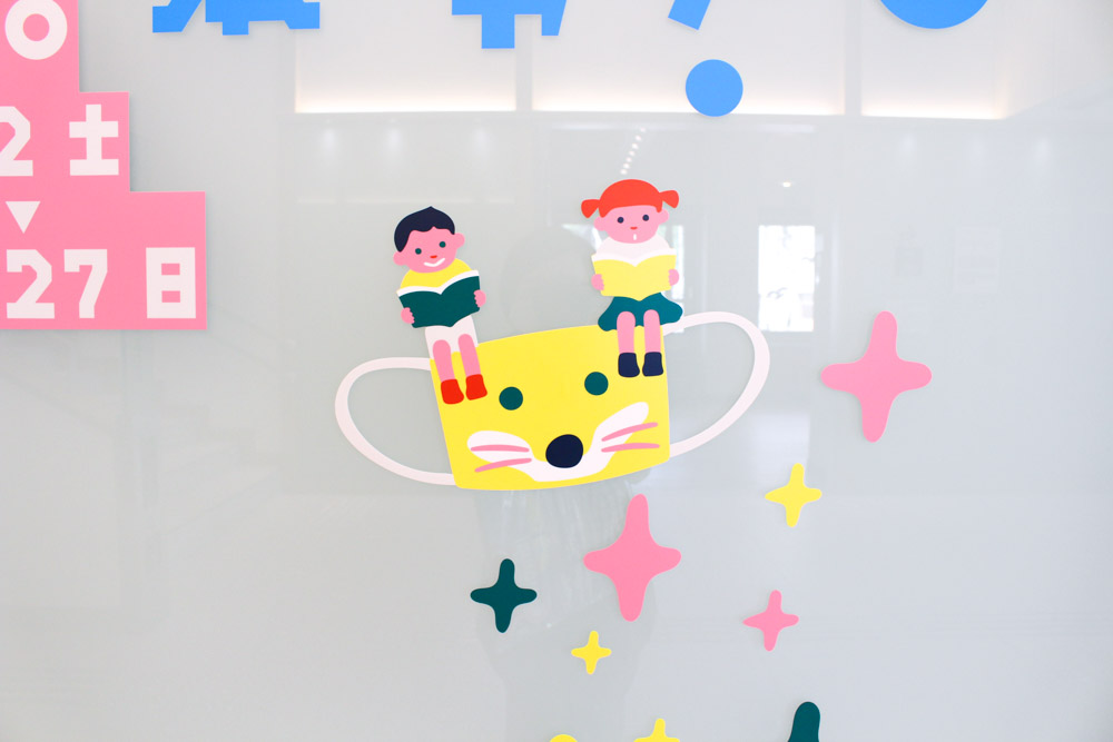 オオノ・マユミさんのイラストが、窓にたくさんありました。