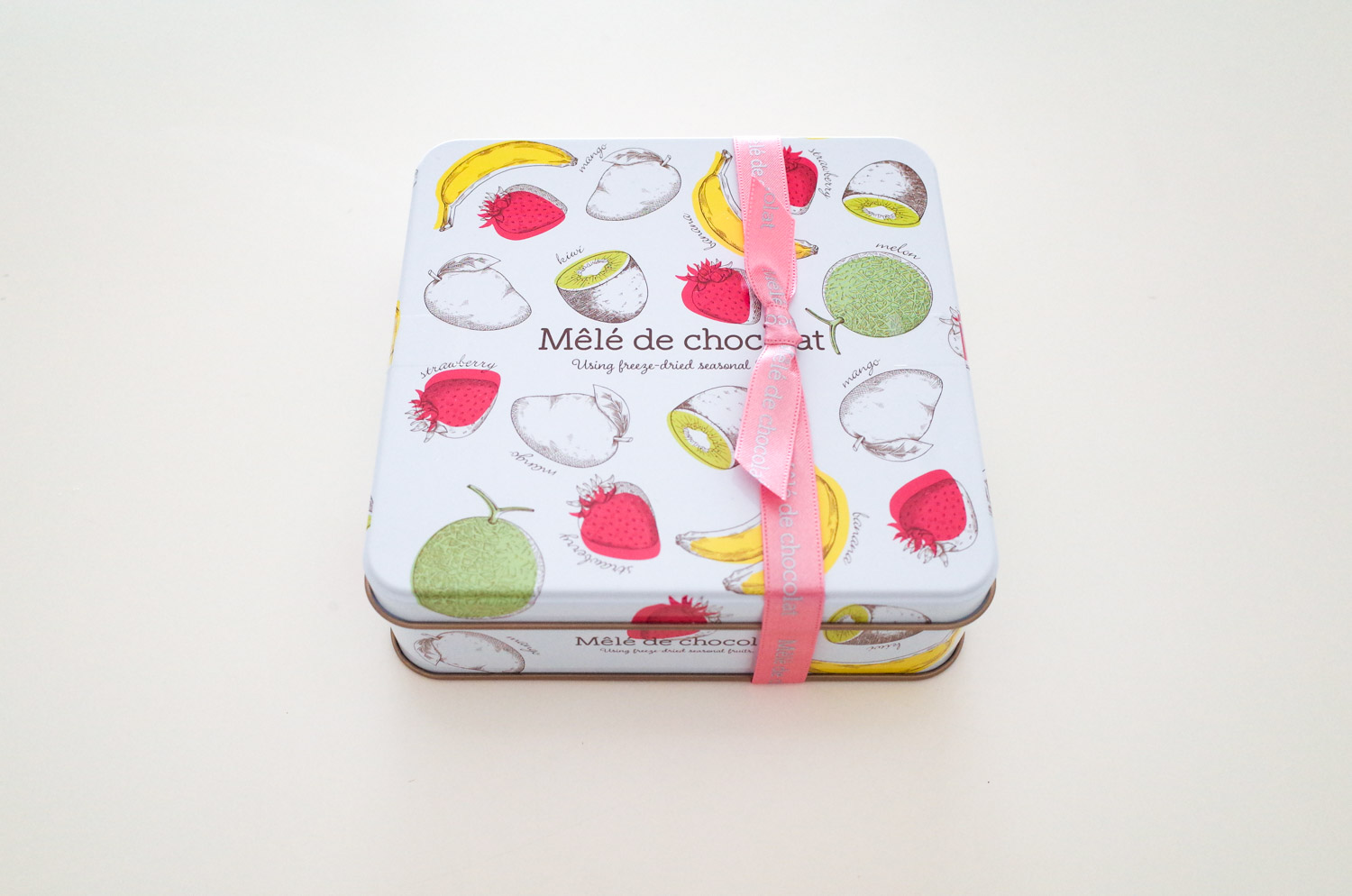 溶けださない理由は、フリーズドライのフルーツの中にチョコレートが浸み込んでいるからとのこと。形崩れを気にして贈りもののお菓子選びに迷ってしまうような、気温の高い時期は特に嬉しいポイントです。
