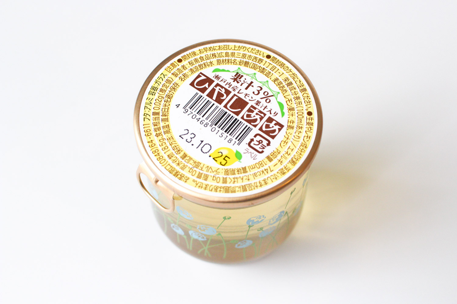 桜南食品のひやしあめ 2023.1.8 Date 収集日 2023年1月 URL https://o-nan.co.jp/ 場所広島県モチーフ自然花素材瓶カテゴリジュース飲みものタグ—カラーイエローブルー クレジット