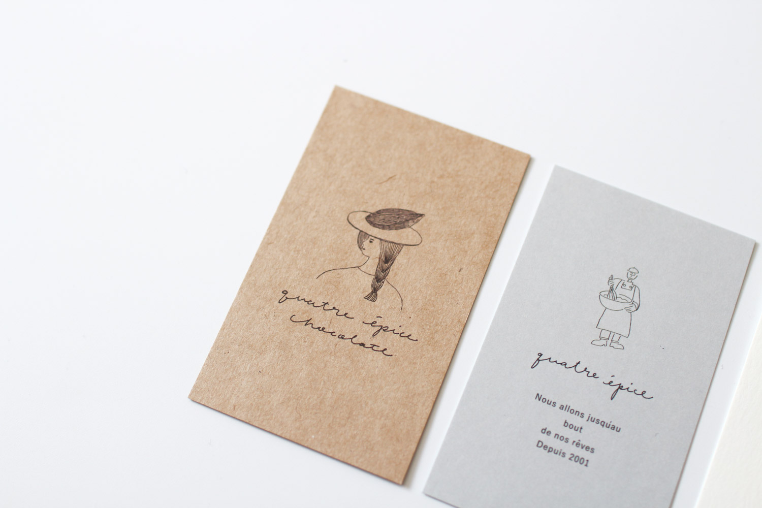 静岡の洋菓子店 quatre epice(キャトルエピス)の紙もの 2024.5.12 Date 収集日 2024年5月 URL https://www.quatre-epice.com/ 場所静岡県モチーフ女の子お菓子素材—カテゴリショップカード紙ものタグ—カラーブラウングレーホワイト クレジット イラスト:深澤みなみさん