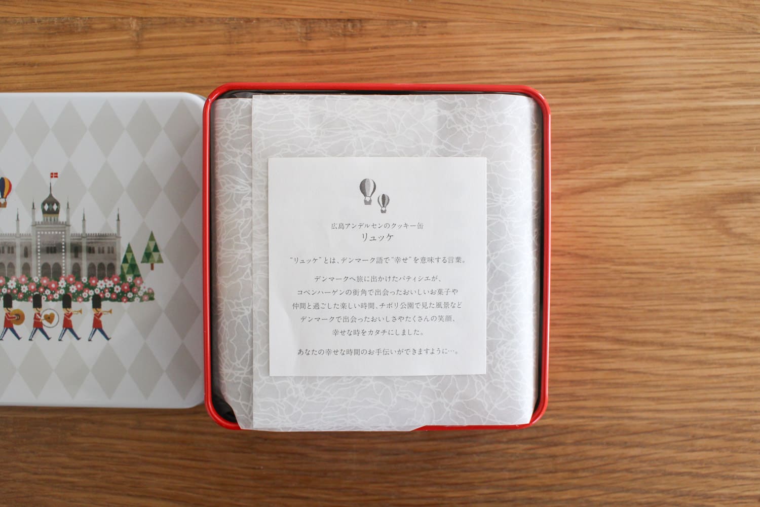 アンデルセン〈リュッケ〉 2026.3.7 Date 収集日 URL https://www.andersen.co.jp/ 場所広島県モチーフ—素材缶カテゴリお菓子クッキータグクッキー缶カラーレッドホワイト クレジット