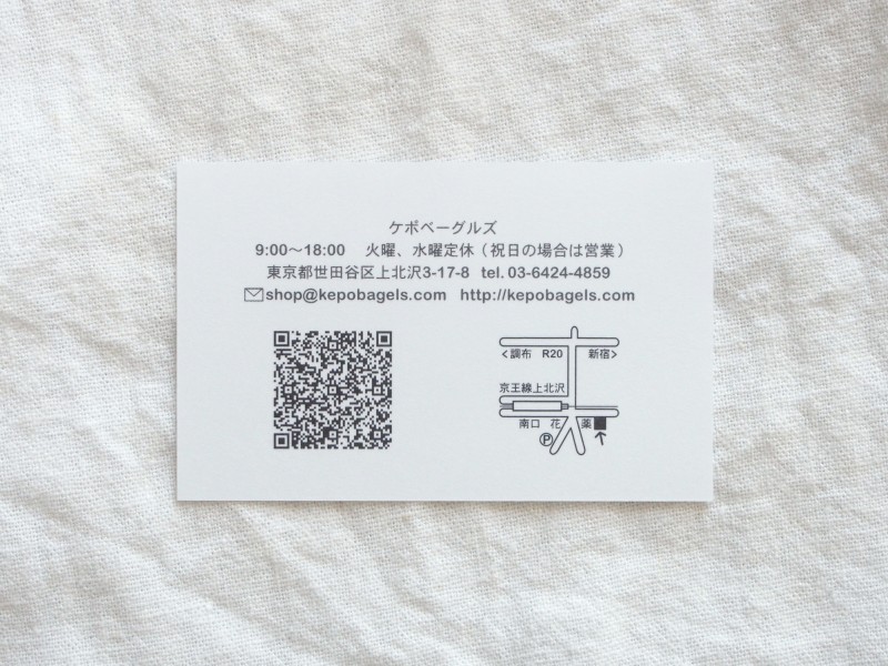 世田谷のベーグル屋さん「kepo bagels」のショップカード 東京世田谷、上北沢駅近くのベーグル屋さん「kepo bagels」のショップカード。 2013.4.11 Date 収集日 URL 場所東京都モチーフ—素材—カテゴリショップカード紙ものタグ—カラー— クレジット