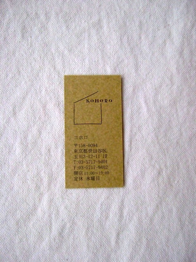 器や生活雑貨を扱う二子玉川のお店「KOHORO(コホロ)」のショップカード