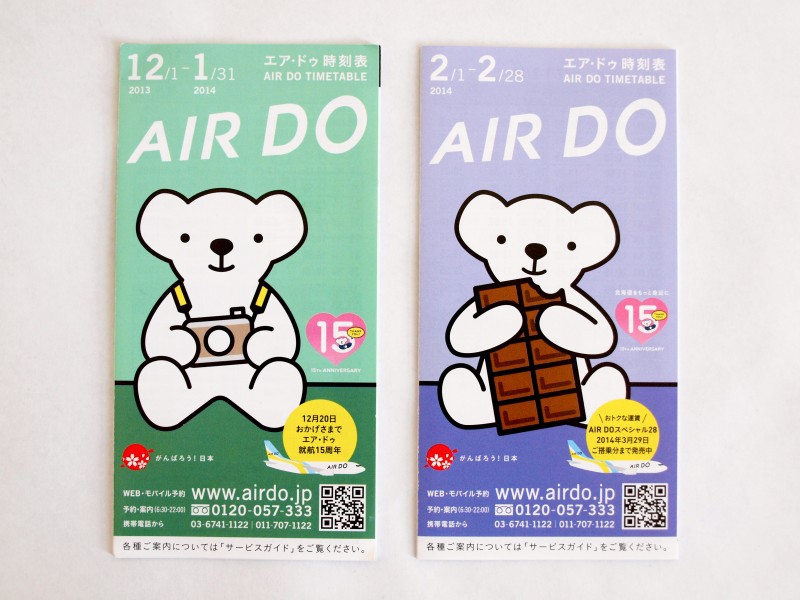 北海道の飛行機会社 AIR DO (エア・ドゥ)の時刻表 2013年12月〜2014年1月と2月版